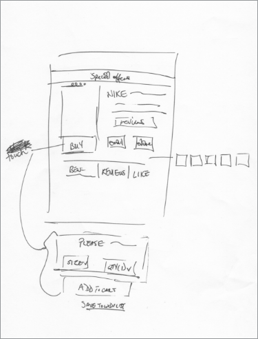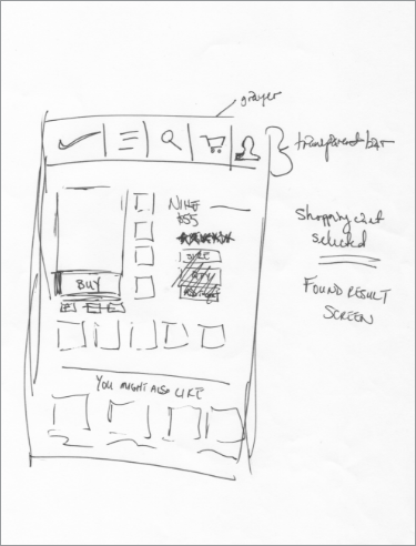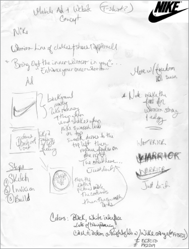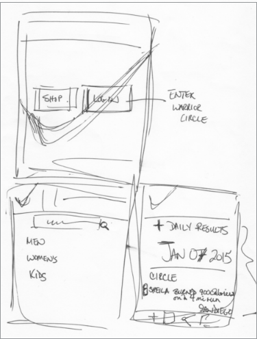 Once I completed my research, it was time to design. I decided to focus on a unique approach to connecting the data as a way to share and compete in the Nike community. First, I collaborated with the Fuel team to deliver the overall customer journey across retail, digital, and cross-platform. Then, I sketched ideas for apparel readings, workouts, community engagement, and online store purchases.